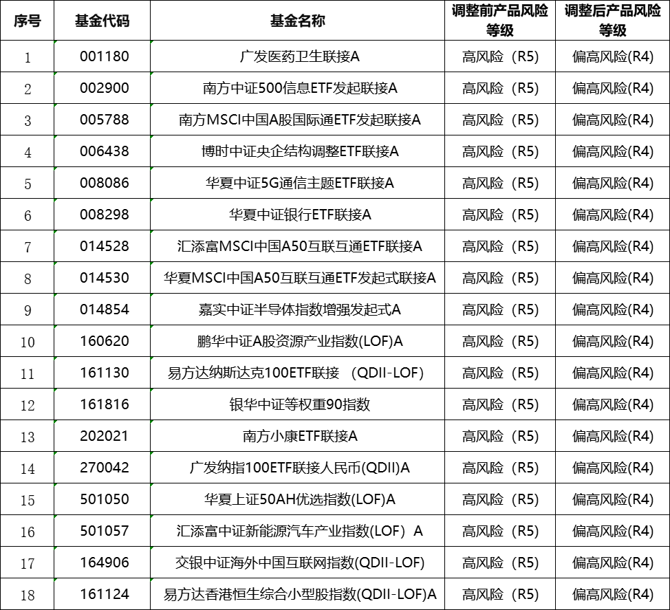 關(guān)于調(diào)整部分代銷公募基金產(chǎn)品風險等級的公告
