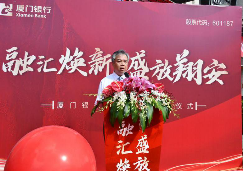 融匯煥新,盛放翔安。2021年7月14日,廈門銀行翔安支行喬遷新址后正式對外揭牌營業(yè)。廈門銀行行長吳昕顥、副行長兼廈門業(yè)務(wù)管理總部總監(jiān)劉永斌、廈門業(yè)務(wù)管理總部部分領(lǐng)導(dǎo)以及翔安支行客戶代表出席了支行開業(yè)慶典。