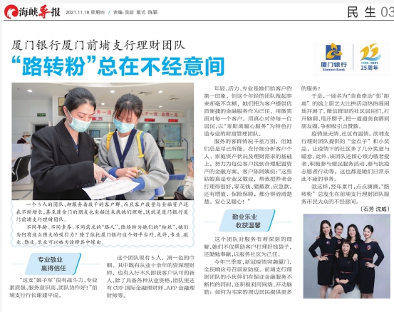 媒體看廈行 | 廈門銀行前埔支行理財團隊,“路轉(zhuǎn)粉”總在不經(jīng)意間