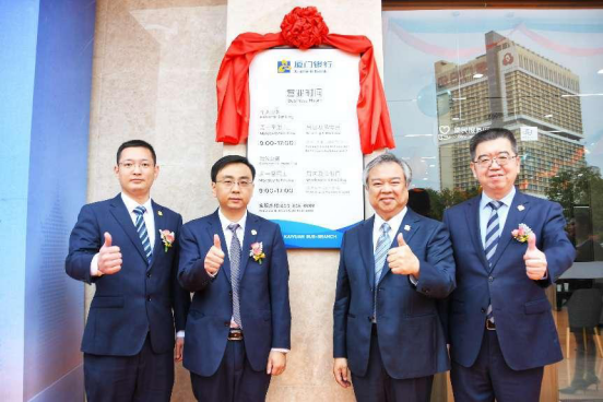 廈門銀行行長吳昕顥,廈門銀行副行長劉永斌,廈門銀行廈門業(yè)務管理總部開元業(yè)務部總經理黃鑫,廈門銀行開元支行行長吳文成共同為支行揭牌