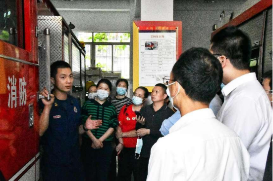 在江頭消防救援站內(nèi),消防戰(zhàn)士通過(guò)實(shí)地講解各類消防器材及防護(hù)工具,銀行職工們參觀了消防車輛器材裝備,認(rèn)真聆聽消防員介紹各類消防車及裝備器材的名稱、性能、用途及操作方法,職工們身臨其境感受消防車、穿上消防服,對(duì)消防有了更加深入直觀的了解,感受消防戰(zhàn)士的艱辛。