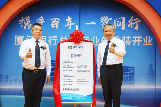 廈門銀行行長吳昕顥、廈門銀行總行營業(yè)部總經(jīng)理林榮煌共同為支行揭牌