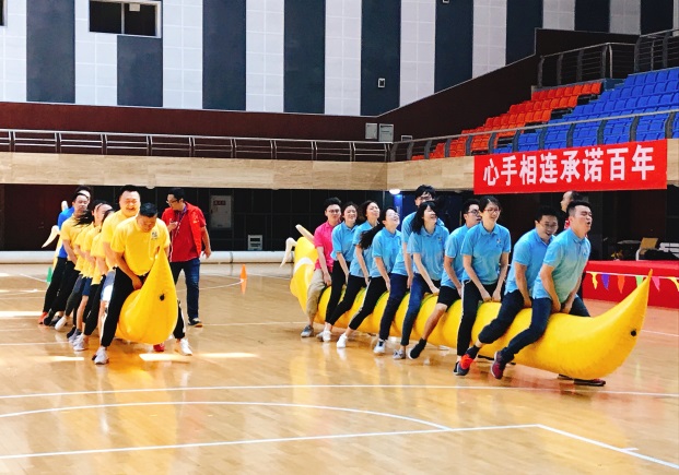 當天分行員工們被分為9支隊伍,各隊伍身著不同色彩的統(tǒng)一隊服,以飽滿十足的精神面貌昂首走進賽場,各式各樣有趣的隊名和口號一開始就為活動增添了趣味。