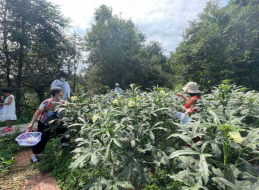 活動當日,大家統(tǒng)一乘坐大巴出發(fā)前往四面山度假小鎮(zhèn),下車后直奔采摘地,滿地的新鮮蔬菜水果,長勢喜人,讓久居都市的客戶們?yōu)橹老玻ㄟ^親手采摘體驗了豐收的農(nóng)家樂趣。中午,客戶們走出菜園,走進農(nóng)莊,品嘗農(nóng)家小菜,每個人都邊吃邊稱贊,好久沒有吃到這么純正的農(nóng)家菜了,更是勾起了很多中老年客戶的回憶。午飯過后,大家稍做休息,開始體驗當?shù)厥掷L草帽的特色活動,整個活動在一片歡聲笑語中結(jié)束。