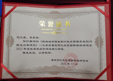 重慶分行榮獲2022年稅收學(xué)術(shù)年會(huì)論文三等獎(jiǎng)