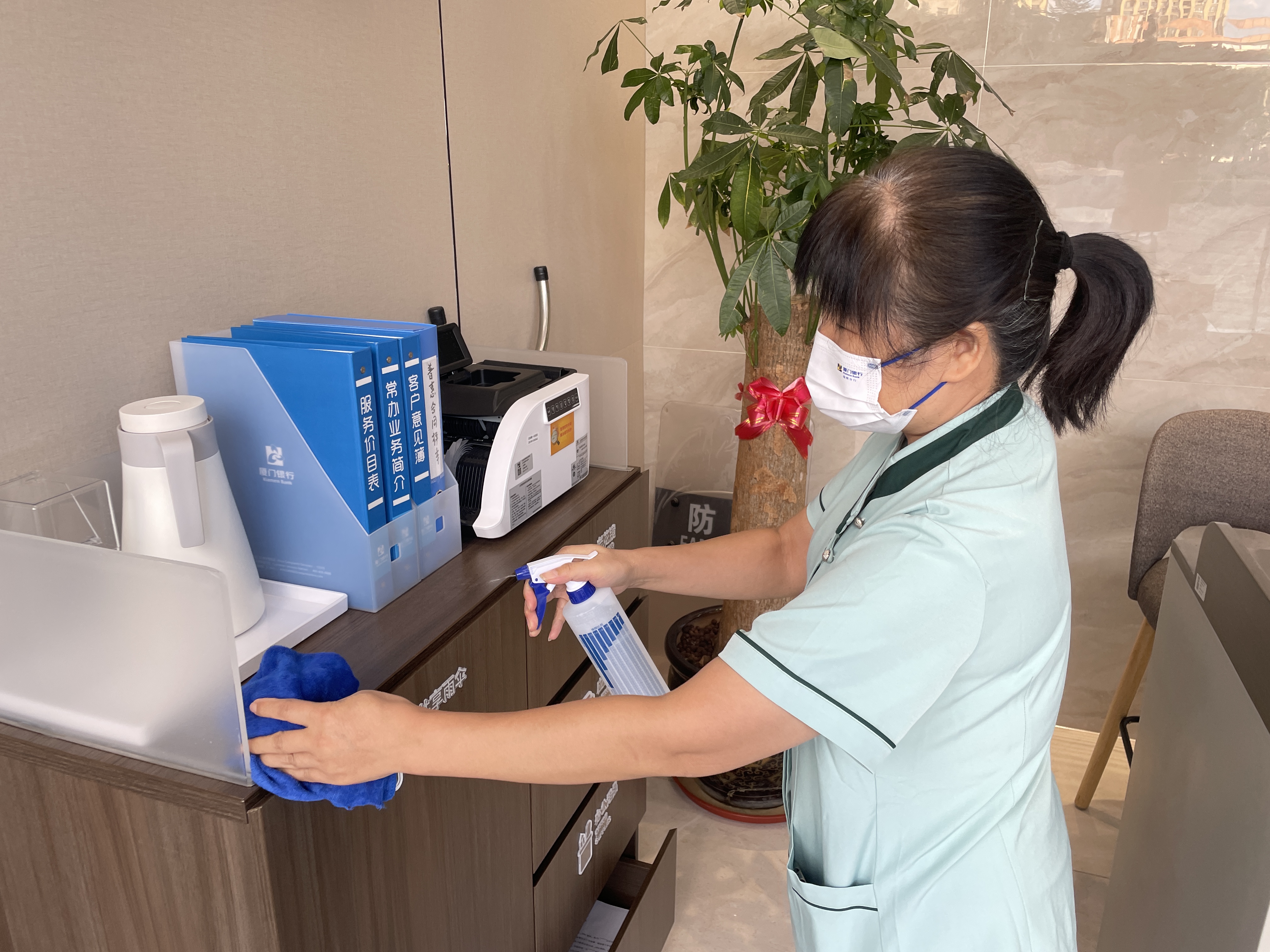 廈門銀行福州分行按照防疫管理規(guī)定,強(qiáng)化辦公場所及營業(yè)大廳防控管理,嚴(yán)格執(zhí)行一米線要求,做好清潔、消毒、測(cè)溫、驗(yàn)碼等工作。并貼心配備了口罩、洗手液、消毒酒精等防疫物資,為客戶營造安全、放心、可靠的金融服務(wù)環(huán)境。同時(shí),各網(wǎng)點(diǎn)在做好疫情防控工作前提下,確保金融服務(wù)不斷檔,積極引導(dǎo)客戶使用手機(jī)銀行、網(wǎng)上銀行,通過遠(yuǎn)程協(xié)助、撥打電話、發(fā)送微信等方式為客戶提供業(yè)務(wù)咨詢,切實(shí)保障金融服務(wù)渠道暢通,提高疫情防控期間金融服務(wù)質(zhì)效。