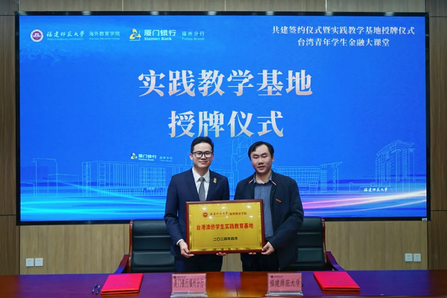 2024年4月10日,廈門銀行福州分行與福建師范大學(xué)海外教育學(xué)院簽署黨建共建協(xié)議、共建實(shí)踐教學(xué)基地協(xié)議,并舉行臺(tái)港澳僑學(xué)生實(shí)踐教育基地授牌儀式。福建師范大學(xué)黨委常委、副校長吳劍鋒,福建師范大學(xué)海外教育學(xué)院黨委書記黃彬,福建師范大學(xué)海外教育學(xué)院黨委副書記張予鋒,廈門銀行黨委委員、福州分行黨委書記、福州分行行長黃俊猛,福州分行黨委委員、行長助理吳連萍,福州分行黨委委員、行長助理蘇毅生出席簽約儀式。