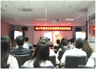 為深入學(xué)習(xí)十九大會(huì)議精神,貫徹從嚴(yán)治黨的政治方向,嚴(yán)明黨的政治紀(jì)律和政治規(guī)矩,堅(jiān)定全體黨員理想信念,拒腐防變,敲響警鐘。泉州分行黨委于近日開展全體黨員警示教育活動(dòng),分行黨委書記謝彤華、組織委員劉桂鳳、青年委員黃旭帶領(lǐng)分行全體黨員及入黨積極分子共50余人參與此次活動(dòng)。