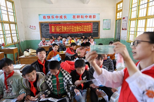 同時,下午分行亦積極立足行業(yè)特性,為白玉小學(xué)的孩子們上了一堂生動活潑的金融知識公益課。在分行志愿者的引導(dǎo)下,小朋友們學(xué)習(xí)了人民幣的發(fā)展史和反假小技巧,懂得了人民幣是國家名片,要愛護(hù)人民幣。