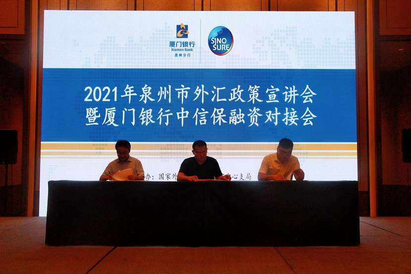 6月17日下午,國家外匯管理局泉州市中心支局、泉州市銀行外匯業(yè)務(wù)自律機制主辦,廈門銀行泉州分行與中國出口信用保險公司泉州辦事處聯(lián)合承辦的“2021年泉州市外匯政策宣講會暨廈門銀行中信保融資對接會”順利舉辦。各單位有關(guān)領(lǐng)導(dǎo)等共80余人參會。