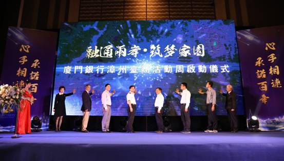 當(dāng)天,在論壇開始之前,現(xiàn)場還舉行了廈門銀行漳州臺商活動周啟動儀式。市政府張翼騰副市長、總行洪主民行長、市臺協(xié)林伯彥會長等與會領(lǐng)導(dǎo)共同上臺按下手印,正式拉開了廈門銀行漳州臺商活動周的序幕。