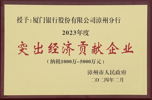 漳州分行再次獲評(píng)漳州市“突出經(jīng)濟(jì)貢獻(xiàn)企業(yè)”稱號(hào)