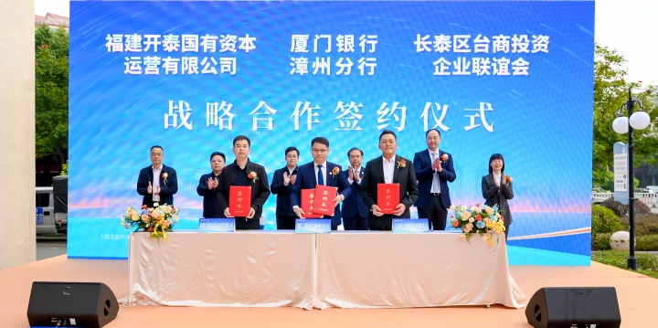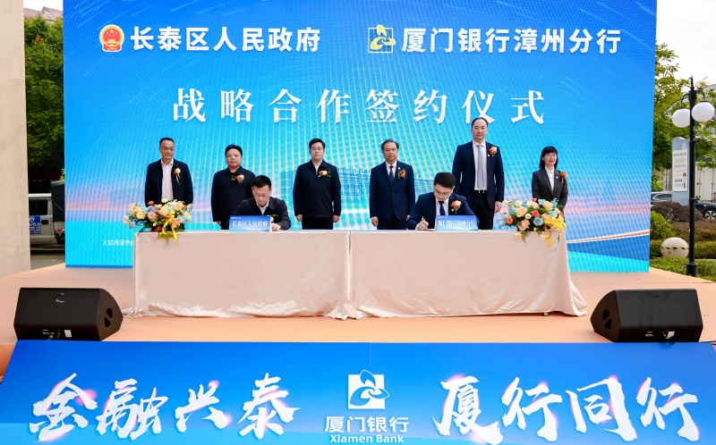 現(xiàn)場舉行廈門銀行漳州分行與長泰區(qū)人民政府戰(zhàn)略合作協(xié)議簽署儀式、廈門銀行漳州分行與福建開泰國有資本運營有限公司和長泰區(qū)臺商投資企業(yè)聯(lián)誼會戰(zhàn)略合作協(xié)議簽署儀式。