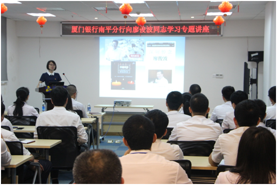 近期,習(xí)總書記對廖俊波同志先進(jìn)事跡作出重要指示,全國上下掀起了向廖俊波同志學(xué)習(xí)的熱潮。為使廣大黨員干部、員工更好地了解、學(xué)習(xí)廖俊波同志的先進(jìn)事跡, 6 月20 日晚,廈門銀行南平分行黨委特地邀請到南平市委黨校陳芳萍老師作廖俊波同志事跡專題講座。陳老師曾在泉州市委黨校、福州市委黨校、廈門城市職業(yè)學(xué)院、南平市國稅局等多家單位作過10 余場廖俊波同志專題講座,都獲得廣泛好評。