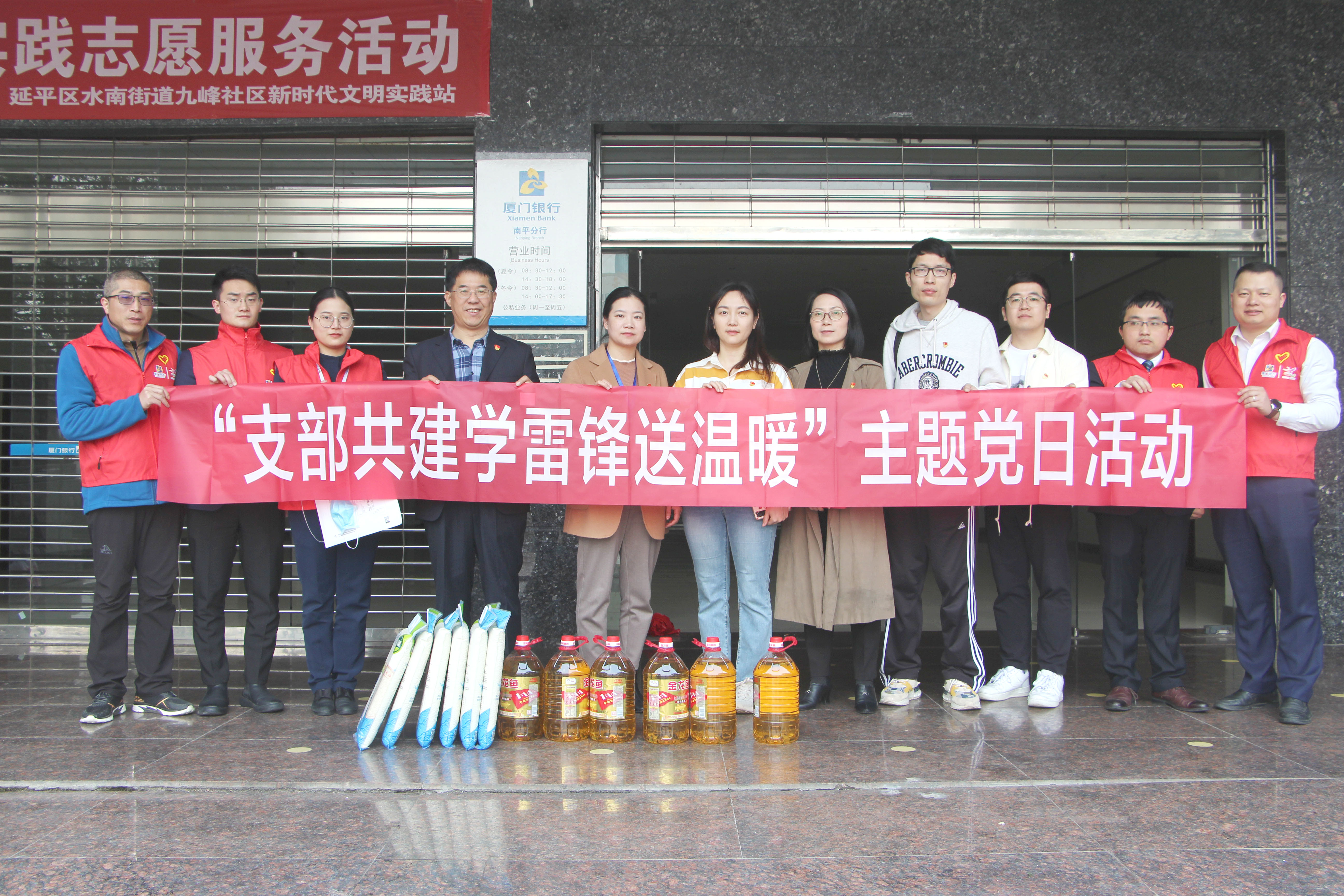 在“學(xué)雷鋒紀(jì)念日”到來之際,為弘揚(yáng)“奉獻(xiàn)、友愛、互助、進(jìn)步”的志愿服務(wù)精神,營造文明和諧、團(tuán)結(jié)奮進(jìn)的社會氛圍,2022年3月4日,廈門銀行南平分行聯(lián)合南平銀保監(jiān)分局、九峰社區(qū)開展“學(xué)雷鋒送溫暖”支部結(jié)對共建主題活動。