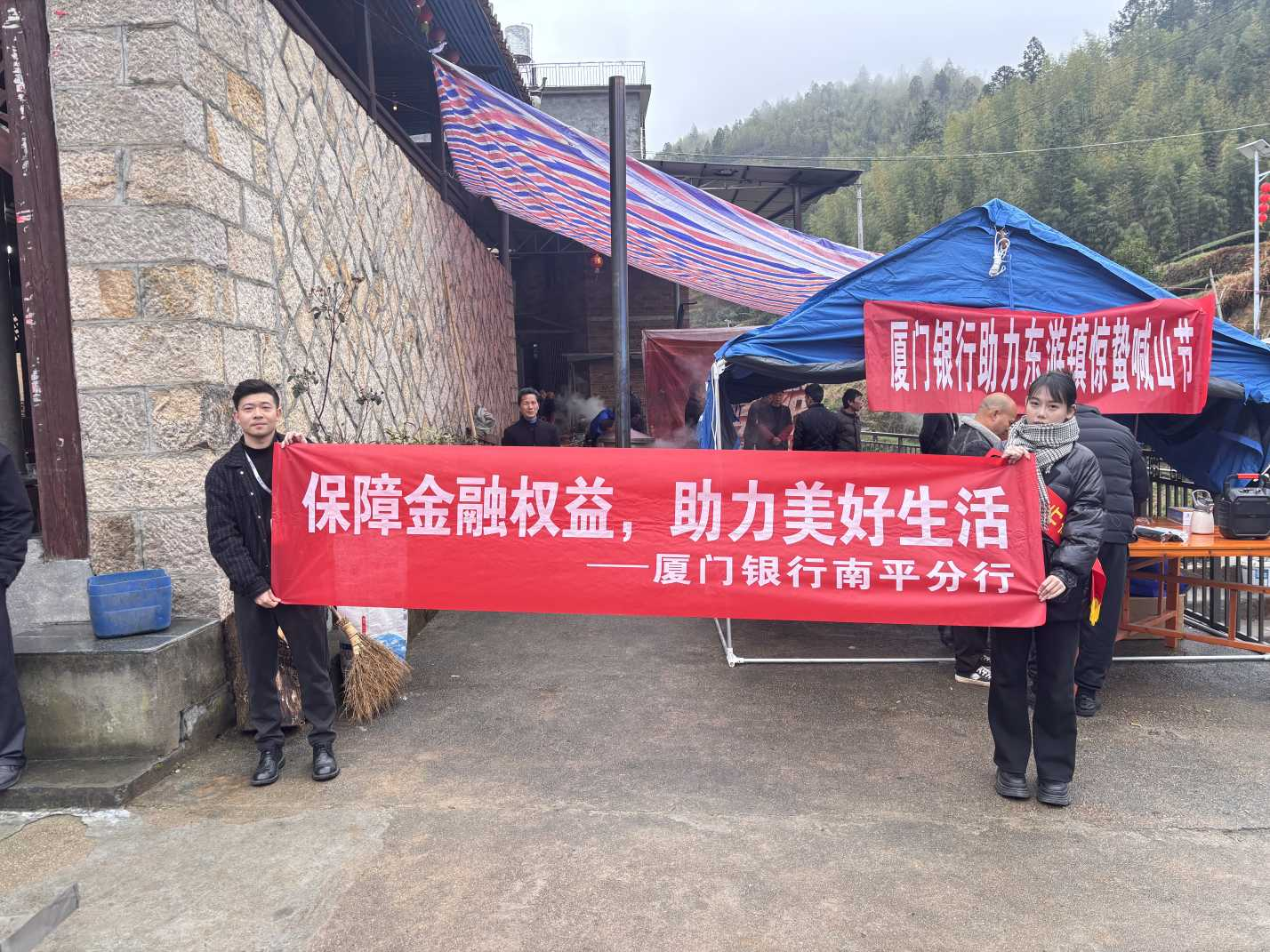在一片熱鬧之中,支行專門設(shè)立的金融服務(wù)點(diǎn)十分亮眼,紅色橫幅“廈門銀行助力東游鎮(zhèn)喊山節(jié)”隨風(fēng)飄動,格外醒目。我行工作人員熱情滿滿,面對村民與游客拋出的金融知識、貸款政策相關(guān)問題,都一一耐心作答。他們借助手機(jī)演示、文件資料等方式,生動講解了復(fù)雜的金融知識,幫助大家熟悉了金融工具,提升金融產(chǎn)品認(rèn)知度與理財(cái)意識。