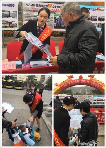 2017年01月09日,莆田分行開(kāi)展了以“12345,服務(wù)找政府;公安110,為民保安寧”為主題的聯(lián)合宣傳活動(dòng),該活動(dòng)由莆田市公安局牽頭組織,莆田市安監(jiān)局及包括我行在內(nèi)的其他企事業(yè)單位共同參與。