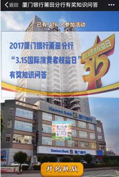 | 一年一度的“3.15金融消費者權益保護日”又到了,莆田分行通過多個渠道、采取多種形式進行宣傳,線上線下聯(lián)動宣傳,活動開展得有聲有色,力爭把宣傳工作做到位。 一、線上宣傳 本次線上宣傳通過分行微信公眾號開展三輪、為期四天的有獎問答活動,活動通過公眾號發(fā)送和行內員工轉發(fā)后,吸引了眾多客戶參與。 二、網(wǎng)點宣傳 通過LED播放宣傳標語、營業(yè)大廳設立咨詢臺、公眾教育區(qū)擺放宣傳材料、多媒體電視播放宣傳視頻等方式對廣大客戶進行宣傳。 三、參與聯(lián)合宣傳 按照莆田人行的安排,與莆田地區(qū)銀行同業(yè)、政府機關、企事業(yè)單位共同參與由莆田市工商局牽頭的、主題為“網(wǎng)絡誠信消費無憂”的大型宣傳活動。活動當天宣傳現(xiàn)場受眾客戶較多,宣傳材料種類豐富齊全,宣傳人員業(yè)務知識扎實,群眾反響熱烈,宣傳效果良好。(莆田分行 鄭銀玲) |