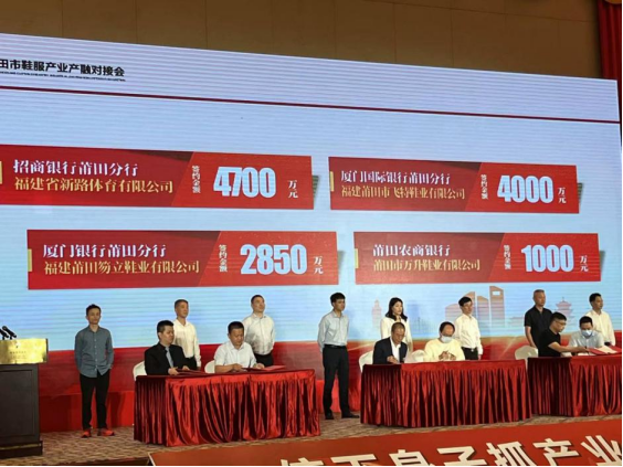 對(duì)接會(huì)上,集中簽約了16個(gè)鞋服產(chǎn)業(yè)產(chǎn)融對(duì)接項(xiàng)目,簽約總金額34.26億元,部分銀行介紹分享了相關(guān)金融服務(wù)產(chǎn)品,莆田分行現(xiàn)場(chǎng)與福建莆田笏立鞋業(yè)有限公司進(jìn)行了簽約,簽約金額2850萬元。