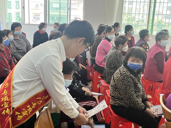 活動前期,分行認真制作了老年人講座課件,包含老年人如何防范非法集資、反電信網(wǎng)絡(luò)詐騙宣導(dǎo)、老年人金融消費風(fēng)險溫馨提示和公安警示等內(nèi)容,為本次宣傳活動做好充分的準備?;顒赢斎?,由分行營運管理部講師鄒劍晶為老年人進行反詐宣導(dǎo);同時,我行工作人員將宣傳折頁逐一分發(fā)給到場的老年人并耐心講解,受到在場老人的一致好評。