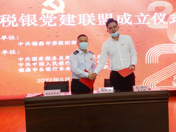 稅銀黨建聯(lián)盟,旨在通過(guò)開(kāi)展特色黨建活動(dòng)、定期互相交流學(xué)習(xí),立足實(shí)際,找準(zhǔn)突破口,打通金融服務(wù)“最后一公里”,共同提升黨建工作整體水平,助力實(shí)體經(jīng)濟(jì)發(fā)展。寧德福鼎支行負(fù)責(zé)人表示,將以此次簽約儀式為契機(jī),加強(qiáng)稅銀合作,強(qiáng)化宣傳聯(lián)動(dòng),推進(jìn)業(yè)務(wù)融合,促進(jìn)營(yíng)造良好的市場(chǎng)信用環(huán)境和經(jīng)濟(jì)發(fā)展環(huán)境。