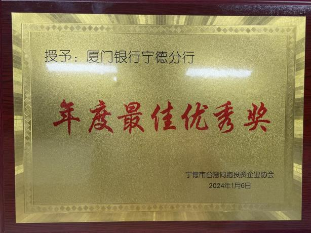 年會上,協(xié)會為部分會員頒發(fā)年度優(yōu)秀獎等榮譽,寧德分行獲授“年度最佳優(yōu)秀獎”,省委臺辦經濟處處長魏明蒂為寧德分行頒獎。獲此殊榮,是寧德臺協(xié)對寧德分行近年來對臺企臺胞金融服務工作的肯定。