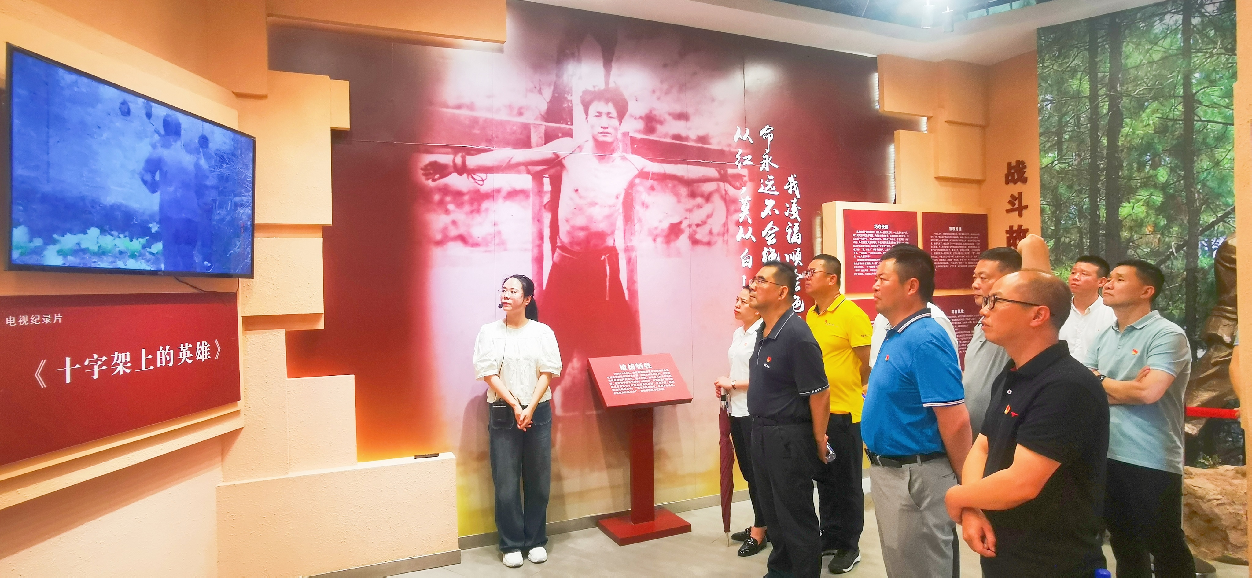 在周寧縣烈士紀(jì)念園凌福順紀(jì)念館,黨員同志們駐足觀看凝結(jié)著厚重歷史的老照片和革命文物,聆聽講解員關(guān)于凌福順烈士英勇事跡的介紹,用心體悟凌福順烈士“革命永不會(huì)絕代”的精神。在莊嚴(yán)的革命烈士紀(jì)念碑下,全體黨員面對(duì)黨旗重溫入警誓詞,緬懷革命先烈,傳承紅色基因。