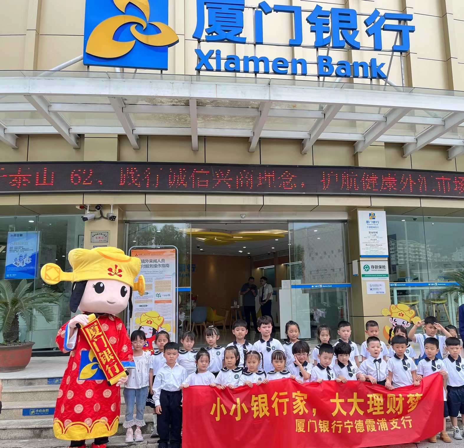 “小朋友們,歡迎大家來(lái)到廈門(mén)銀行寧德霞浦支行,大家知道可以把錢(qián)存在哪里嗎?”“我知道!給爸爸媽媽?!薄按嬖谖业男∝i儲(chǔ)蓄罐里?!薄按娴綇B門(mén)銀行!...”一陣陣歡聲笑語(yǔ)從廈門(mén)銀行寧德霞浦支行傳出,原來(lái)是網(wǎng)點(diǎn)迎來(lái)了一群特別的“客戶(hù)”——霞浦浦禾幼兒園大班的小朋友們。他們今日化身“小小銀行家”,即將開(kāi)啟一段奇妙的金融之旅。