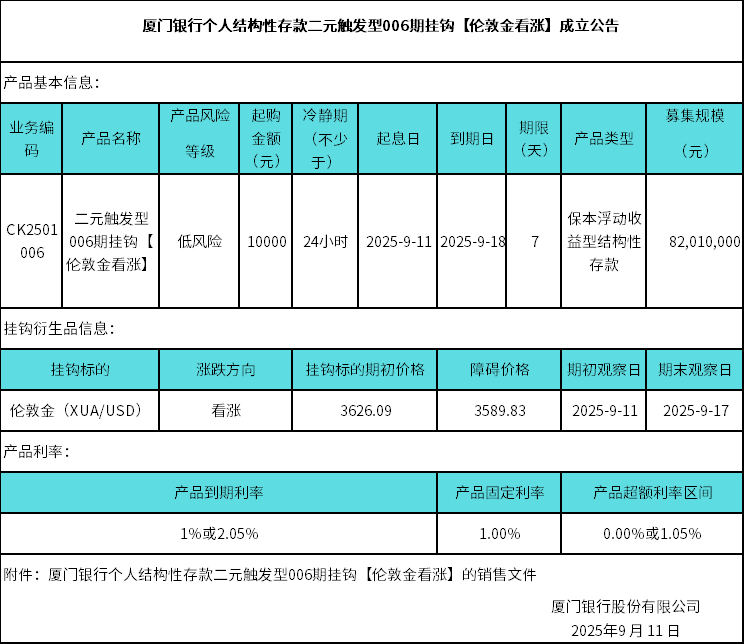 廈門銀行個(gè)人結(jié)構(gòu)性存款二元觸發(fā)型006期掛鉤【倫敦金看漲】成立公告 日期:2025-09-11 15:31:03 廈門銀行個(gè)人結(jié)構(gòu)性存款二元觸發(fā)型006期掛鉤【倫敦金看漲】銷售文件.zip 上一篇 返回 下一篇