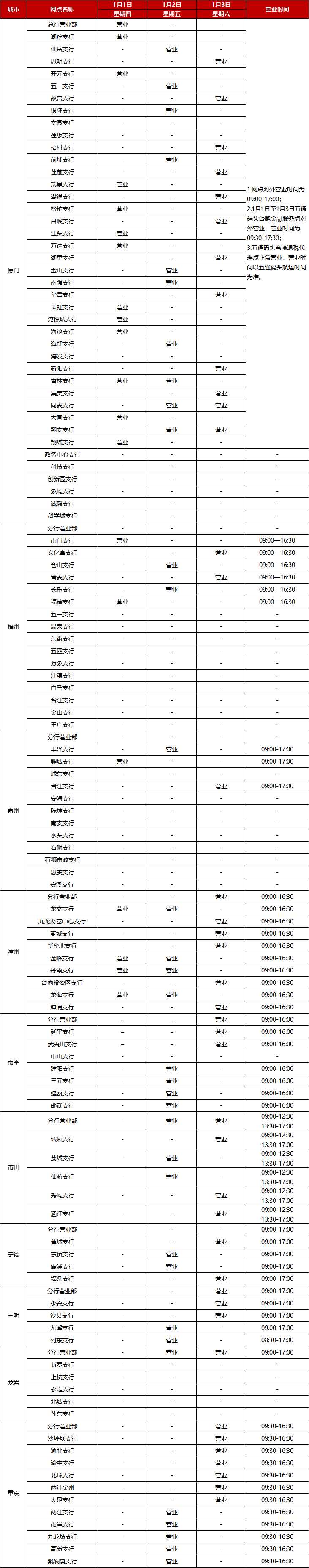 廈門銀行2026年元旦假期網(wǎng)點(diǎn)對(duì)外營(yíng)業(yè)時(shí)間通告