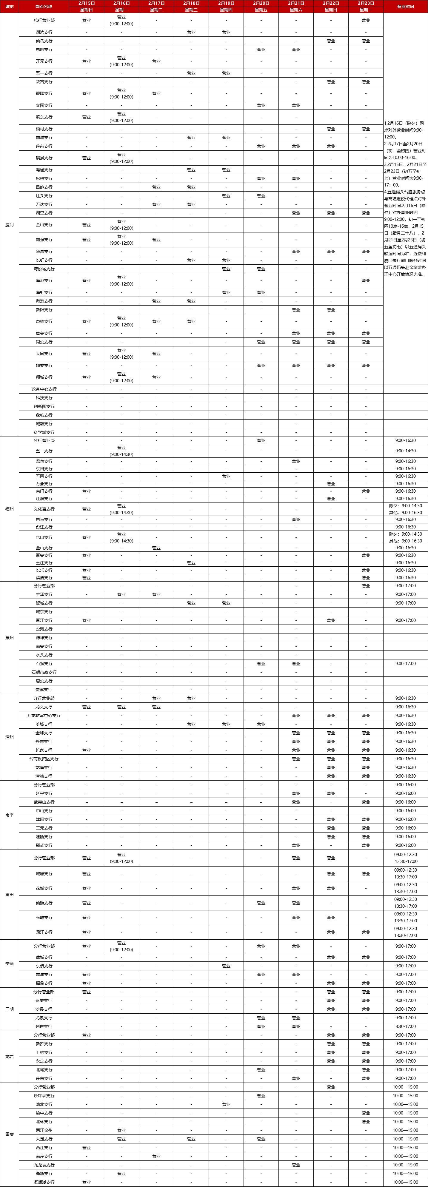 廈門銀行2026年春節(jié)假期網(wǎng)點對外營業(yè)時間通告