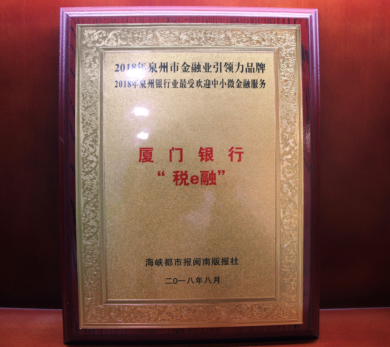 本次,“稅e融”榮獲“2018年泉州銀行業(yè)最受歡迎小微金融服務獎”,是對我行長期支持、服務小微企業(yè)取得成效的認可,也是對我行在深耕“銀稅互動”、踐行普惠金融道路上的一次激勵。