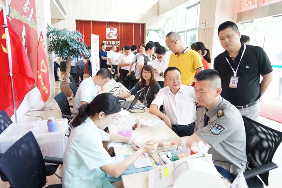 為履行社會責(zé)任,傳播志愿服務(wù)精神,爭創(chuàng)全國文明單位,7月19日下午,贈人玫瑰,手留余香——廈門銀行紀念建黨98周年無償獻血活動在廈門銀行總行一樓舉辦。近百名獻血志愿者獻出自己寶貴的鮮血。填表、體檢、血液初篩、采血,全程秩序井然,累計獻血量近2萬毫升。