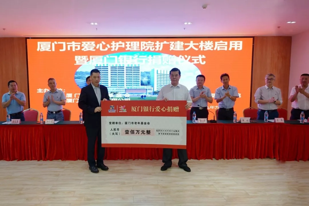 2019年10月16日,廈門市愛心護理院擴建大樓啟用暨廈門銀行捐贈儀式溫馨舉辦,廈門銀行再度為“廈門銀行特困老人救助基金”捐贈100萬元。老年基金會代會長李建福向廈門銀行吳世群董事長授予“2019年度廈門市發(fā)展老年慈善事業(yè)貢獻單位(金質獎)”牌匾。