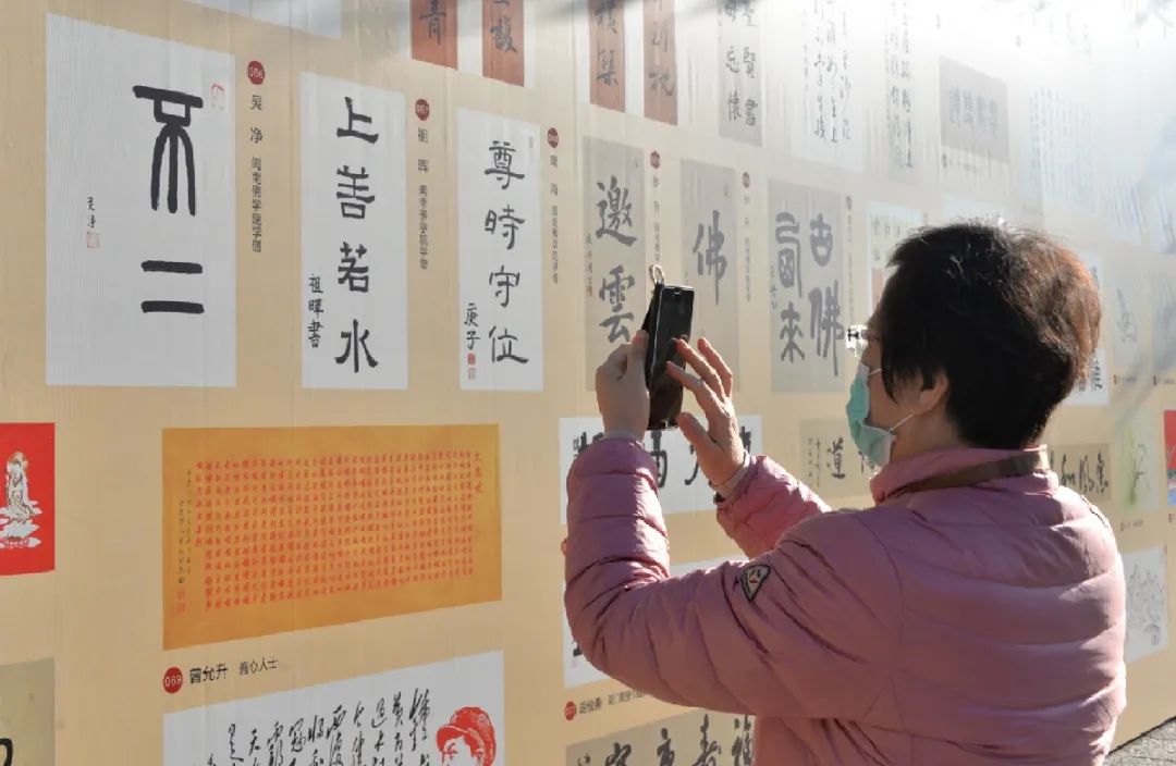 “請(qǐng)?;丶摇杯h(huán)節(jié)備受歡迎,市民游客在“?!弊智昂嫌傲裟睿瑸樾履暾锤?。今年主辦方特意將這一環(huán)節(jié)保留,并請(qǐng)高僧大德和名家大師手書(shū)更多的“?!弊?,呈現(xiàn)福氣滿(mǎn)滿(mǎn)的喜人景象。