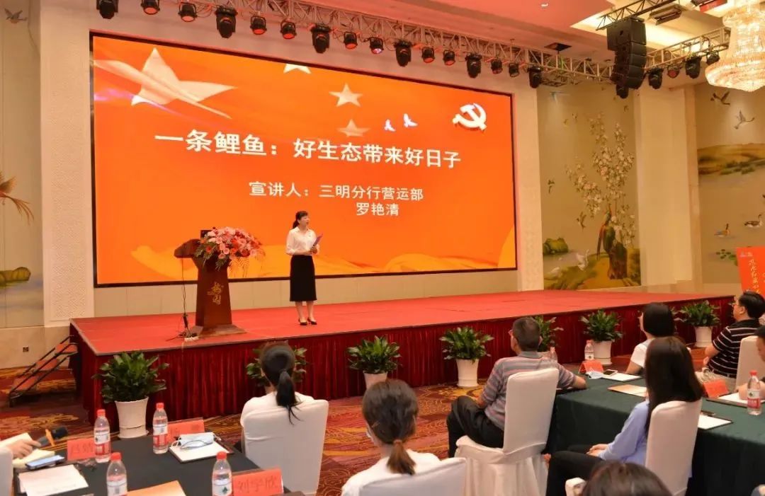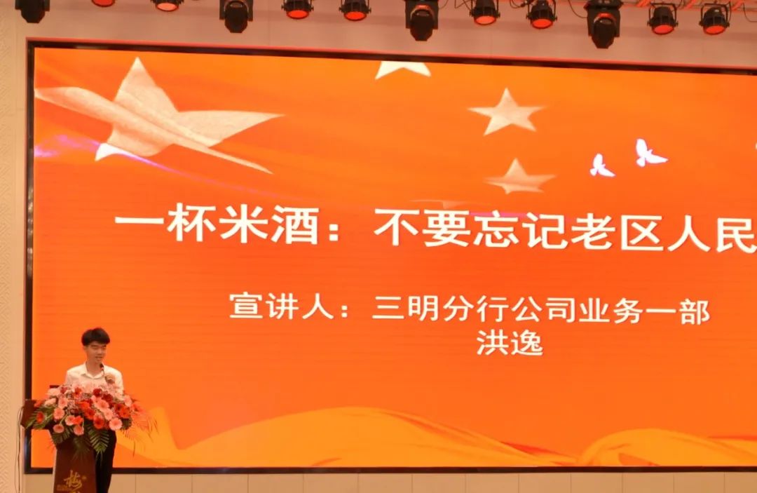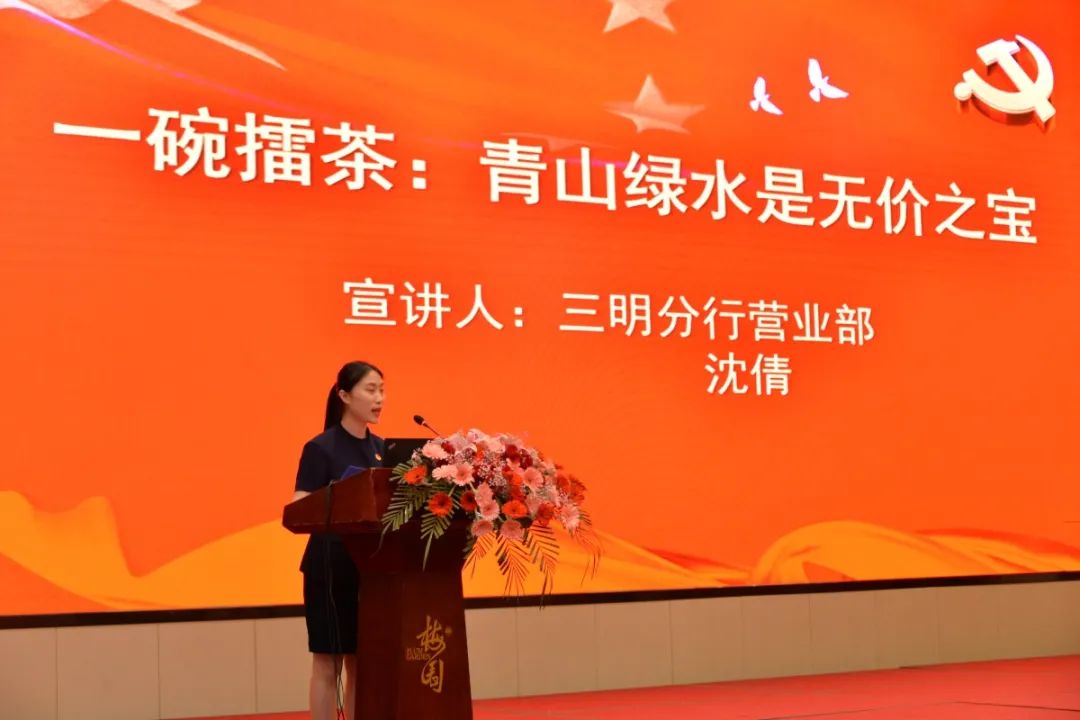 一碗擂茶、一條鯉魚、一杯米酒、一段歌聲、一個傳說,三明分行的團員青年聲情并茂地為大家講述了“五個一”小故事,帶大家在小故事中領(lǐng)略習(xí)總書記與三明地區(qū)人民魚水情深共謀發(fā)展的往事,從小故事感悟習(xí)近平新時代中國特色社會主義思想,進一步增強了堅定不移跟黨奮進新時代的信念。