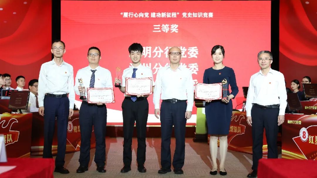 比賽現(xiàn)場(chǎng)氣氛熱烈,答題過(guò)程扣人心弦。各隊(duì)選手配合默契,沉著應(yīng)戰(zhàn),以豐富的知識(shí)、敏捷的思維、流利的表述贏得了陣陣掌聲,展示出了扎實(shí)的知識(shí)儲(chǔ)備和優(yōu)良的團(tuán)隊(duì)協(xié)作精神。經(jīng)過(guò)激烈角逐比拼,廈門業(yè)務(wù)管理總部黨委最終摘得桂冠。