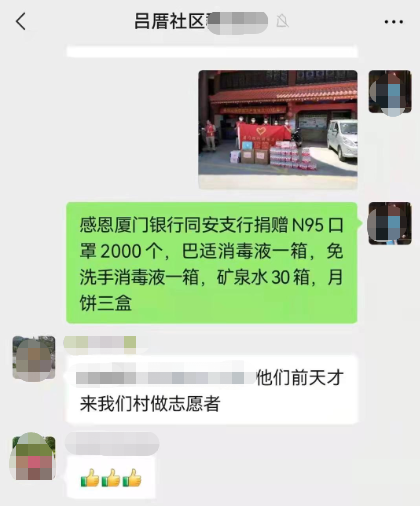 疫情防控刻不容緩,疫情殲滅有我同行。了解到同安地區(qū)的疫情防控情況后,廈門銀行迅速發(fā)起志愿者招募。“我報名”“我可以”“我家里已經(jīng)安頓好了,讓我參加!”同安支行的員工紛紛報名參加,一支由同安支行員工組建起來的志愿隊就這樣誕生了。支行主動對接所屬社區(qū)及所掛鉤村居委會,協(xié)助開展各項(xiàng)疫情防控工作。