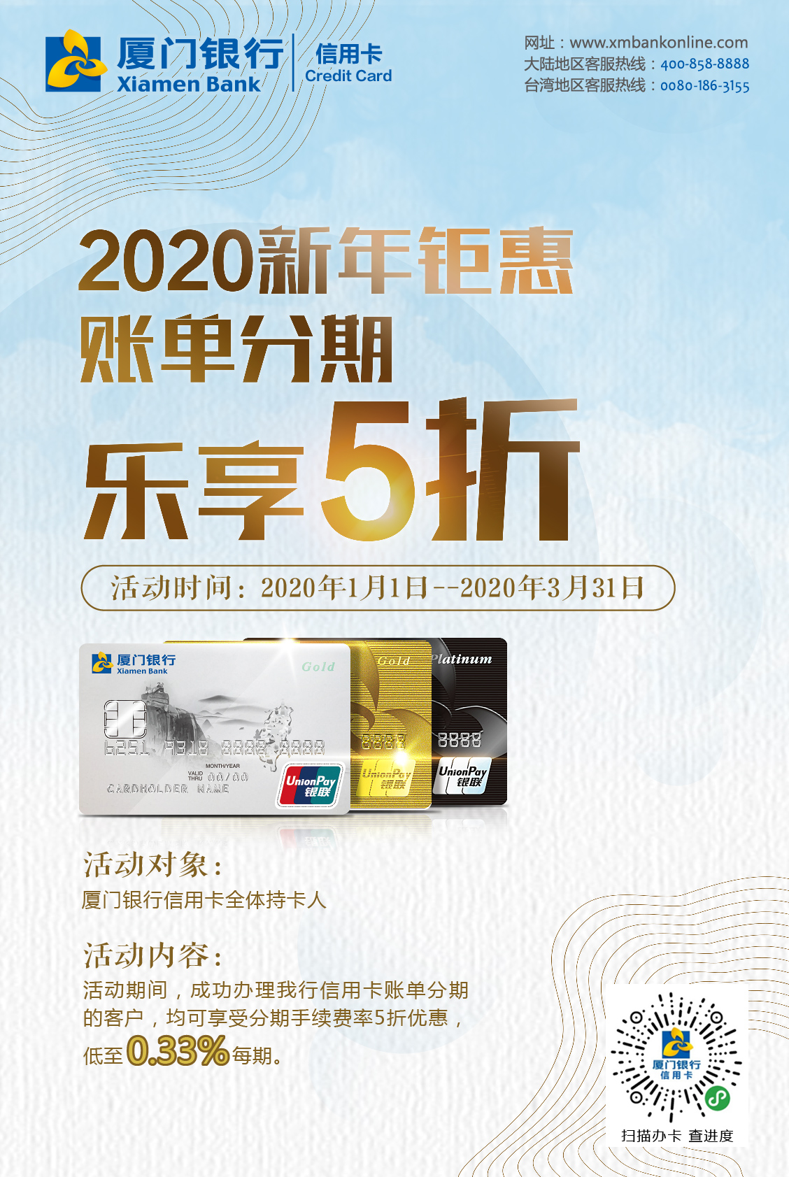 2020新年鉅惠:賬單分期享5折優(yōu)惠!