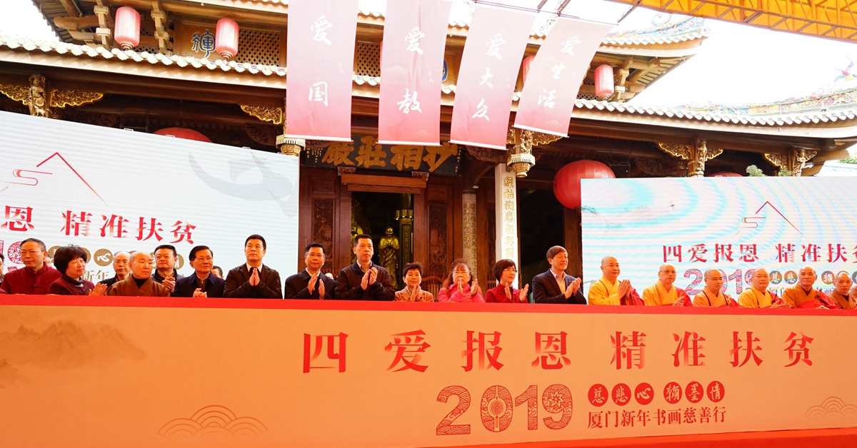 新年伊始,一年一度的“慈悲心·翰墨情——2019廈門新年書畫慈善行”在千年古剎南普陀寺如期舉辦。廈門市有關(guān)領(lǐng)導(dǎo)、嘉賓和來自佛教界、書畫界、慈善界人士,與海內(nèi)外游客相聚一堂,共品丹青,獻(xiàn)出愛心。