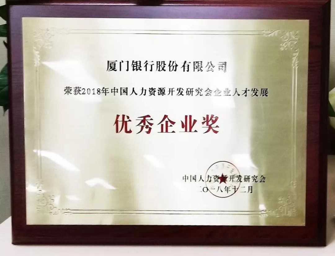 在2018年中國人才發(fā)展論壇暨中國人力資源開發(fā)研究會(huì)2018年企業(yè)人才發(fā)展獎(jiǎng)?lì)C獎(jiǎng)典禮上,廈門銀行從近千家參評(píng)機(jī)構(gòu)中脫穎而出,榮獲“2018年企業(yè)人才發(fā)展優(yōu)秀企業(yè)獎(jiǎng)”。作為該獎(jiǎng)項(xiàng)的主辦單位,中國人力資源開發(fā)研究會(huì)是由國家發(fā)展改革委發(fā)起,在我國人力資源開發(fā)領(lǐng)域具有權(quán)威和影響力的國家級(jí)社會(huì)團(tuán)體。中國企業(yè)人才發(fā)展獎(jiǎng)是該組織的年度評(píng)審獎(jiǎng)項(xiàng),旨在表彰在人才發(fā)展領(lǐng)域成績(jī)優(yōu)異、貢獻(xiàn)突出的單位和個(gè)人。