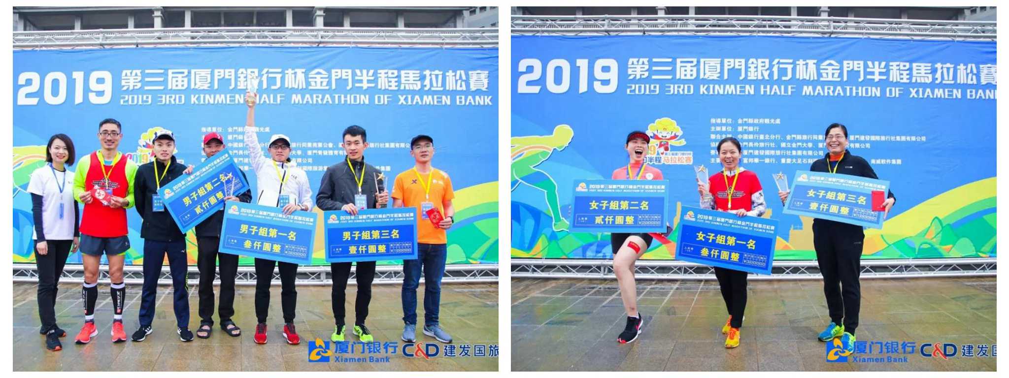 本屆賽事陣容強(qiáng)大,廈門銀行作為主辦方,金門縣政府觀光處作為指導(dǎo)單位,建發(fā)國旅集團(tuán)、中國銀行臺(tái)北分行、金門縣旅行商業(yè)同業(yè)公會(huì)作為聯(lián)合主辦方,富邦華一銀行、重慶大足石刻國際旅游集團(tuán)、南威軟件集團(tuán)作為賽事贊助商,共同見證了第三屆廈門銀行杯金門半程馬拉松賽的順利舉行。