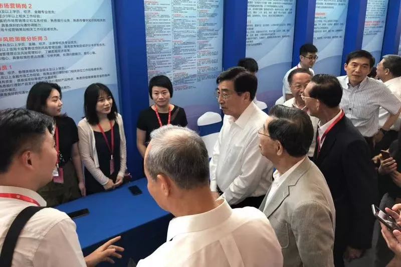 兩岸企業(yè)家峰會大陸方面郭金龍理事長、臺灣方面蕭萬長理事長等領(lǐng)導(dǎo)來到廈門銀行臺灣人才招募展區(qū),了解廈門銀行招聘的崗位內(nèi)容和要求,詳細(xì)詢問了目前在廈門銀行就業(yè)的臺灣青年的工作生活情況,并對廈門銀行在臺灣人才引進(jìn)等方面的工作表示肯定。