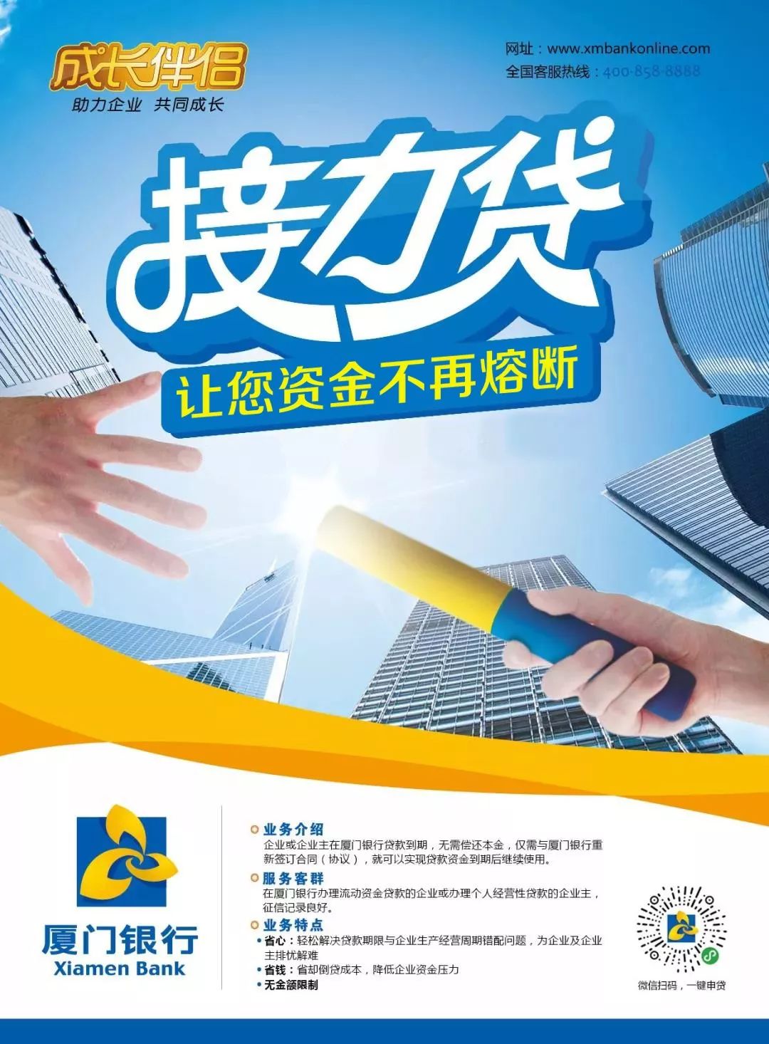 “接力貸”是廈門(mén)銀行在廈門(mén)銀保監(jiān)局的指導(dǎo)與支持下,秉持“完善和創(chuàng)新小微企業(yè)貸款服務(wù),提高小微企業(yè)金融服務(wù)水平”的宗旨推出的無(wú)縫續(xù)貸產(chǎn)品。