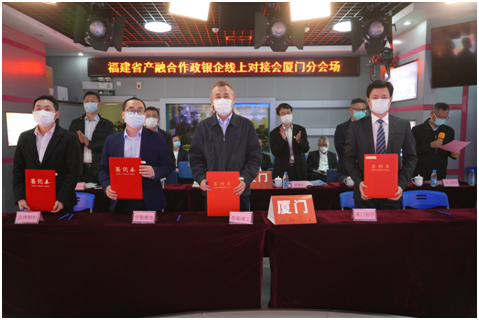 2020年3月30日,福建省工信廳舉辦全省產(chǎn)融合作政銀企線上對接會,廈門市工信局在中小企業(yè)服務(wù)中心召開廈門分會場會議,廈門市副市長黃曉舟、工信局副局長葉健及廈門地方金融監(jiān)管局、廈門市人行、廈門銀保監(jiān)局相關(guān)領(lǐng)導出席此次活動。廈門業(yè)務(wù)管理總部黃煒杰副總監(jiān)代表廈門銀行參加,并現(xiàn)場與三家工業(yè)企業(yè)簽定合作意向。