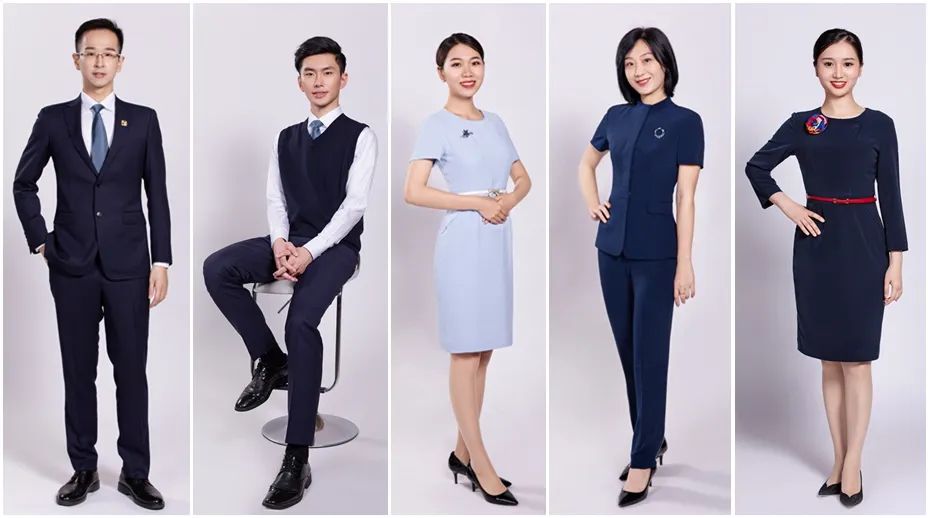 廈門銀行的新行服,分為春夏款和秋冬款。女裝有連衣裙、套裙、西褲、大衣等多種款式,在統(tǒng)一風(fēng)格下,褲裝和裙裝可自由搭配,在兼顧溫度的同時不失高貴優(yōu)雅的風(fēng)度。男裝除了全套西服,還有針織衫、短袖襯衫、大衣等。