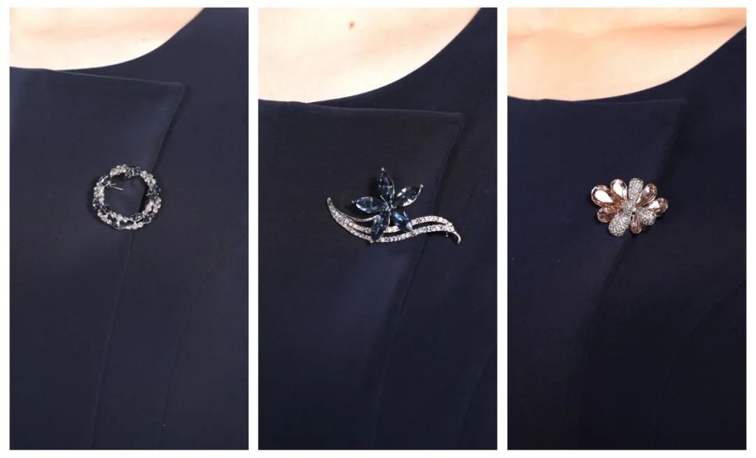 對于制服來說,胸針的樣式往往是點睛之筆。三款定制水晶胸針,讓女員工自由搭配,方圓之間盡顯優(yōu)雅;湛藍(lán)的小花襯托出溫婉氣質(zhì);淡淡粉色增添一絲柔美。