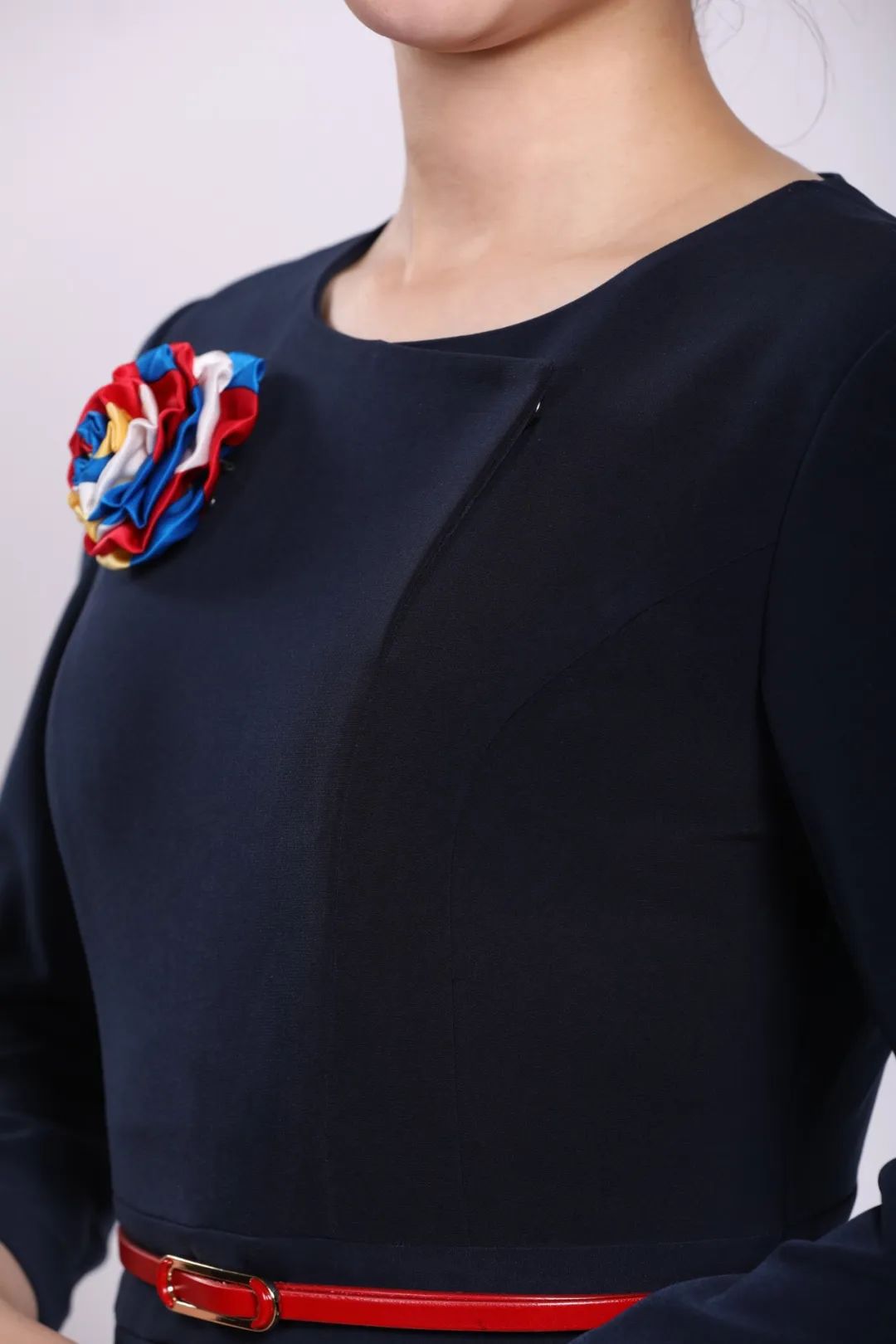 由于時常需要伏身與客戶對話,衣領(lǐng)的設(shè)計是否貼身對女性員工來說至關(guān)重要。連衣裙的圓領(lǐng),套裝的立領(lǐng),均考慮到了女裝貼合身材的需求,讓服務(wù)時的舉止更顯優(yōu)雅從容。