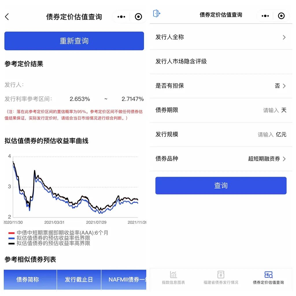 目前國(guó)內(nèi)為數(shù)不多的,能提供一級(jí)市場(chǎng)的債券發(fā)行定價(jià)估值,也是廈門銀行自主研發(fā)的一項(xiàng)創(chuàng)新估值模型,為擬發(fā)債企業(yè)預(yù)估債券發(fā)行利率水平。