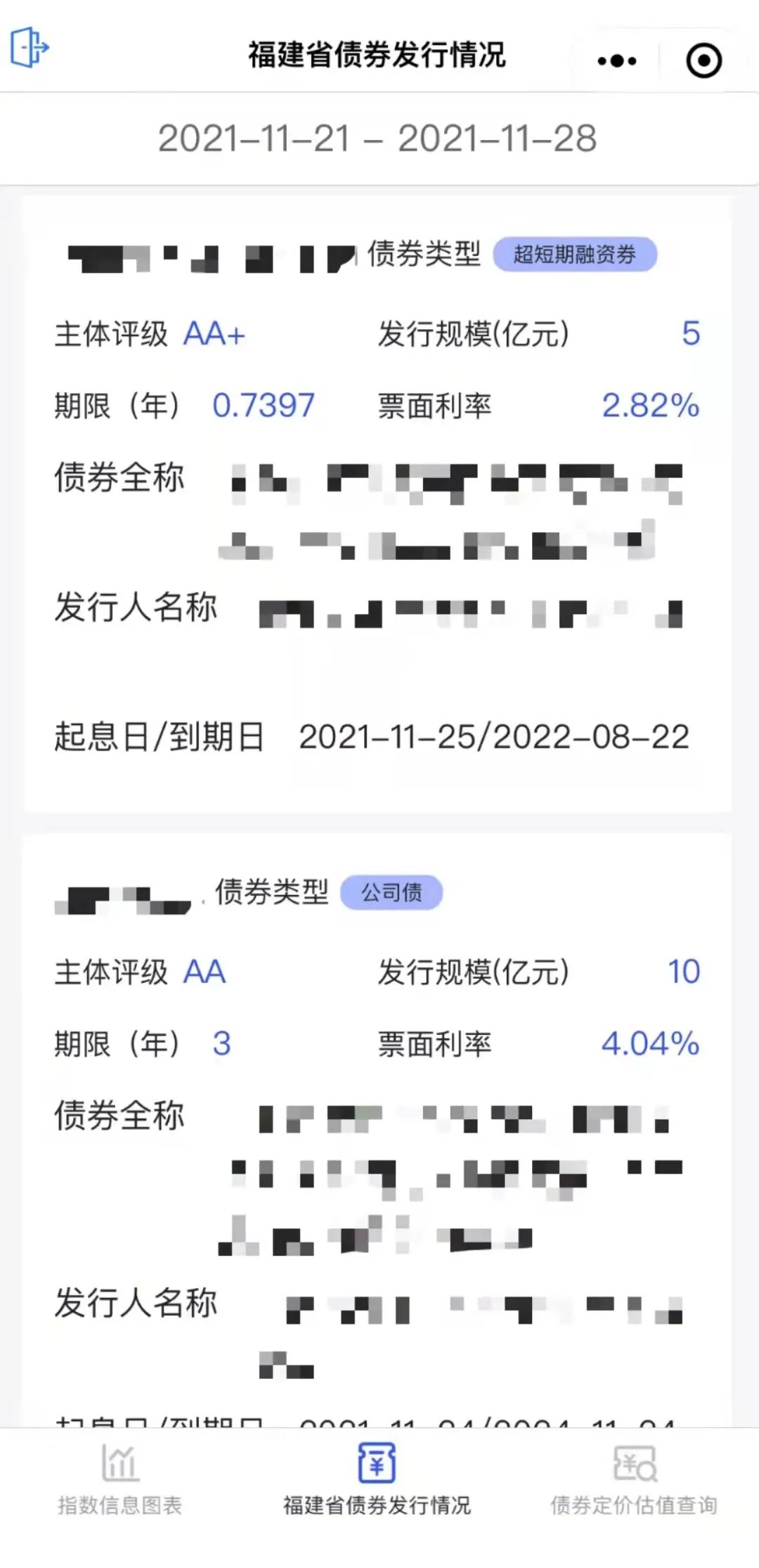 提供福建省內(nèi)企業(yè)債券發(fā)行的基本信息,及時(shí)看到省內(nèi)企業(yè)發(fā)債圈的動(dòng)態(tài)。
